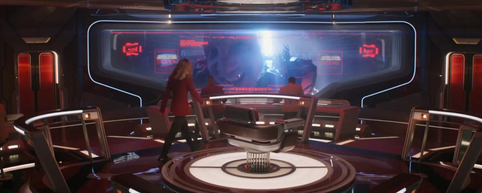 👎 Captain Ake's Priorities when Under Attack — I complained about this in the trailer, and unfortunately, seeing the full scene doesn't add any additional context to make it better. With shields failing and the ship heavily damaged, Ake prioritizes emergency holographic communications and checking in with the Doctor instead of, I don't know, literally anything else. There's also apparently a huge disconnect between what was written, and the final results from the visual effects department. The line, “Target locked on to us at 320 degrees mark 2” would put the enemy ship in front of them – just off the port bow. Ake also calls for all remaining power to forward shields. Unfortunately, the enemy ship is obviously behind them, not in front of them.